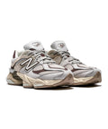 The New Balance 9060 features an innovation-driven design - in white, brown and beige tones. This pair reinterprets familiar elements from the classic 99X models with a warped sensibility inspired by the proudly futuristic and visible tech aesthetic of the 2000s era. It comes with wavy lines and scaled-up proportions on a sculpted chambered midsole place an exaggerated emphasis on the familiar cushioning platforms of ABZORB and SBS.